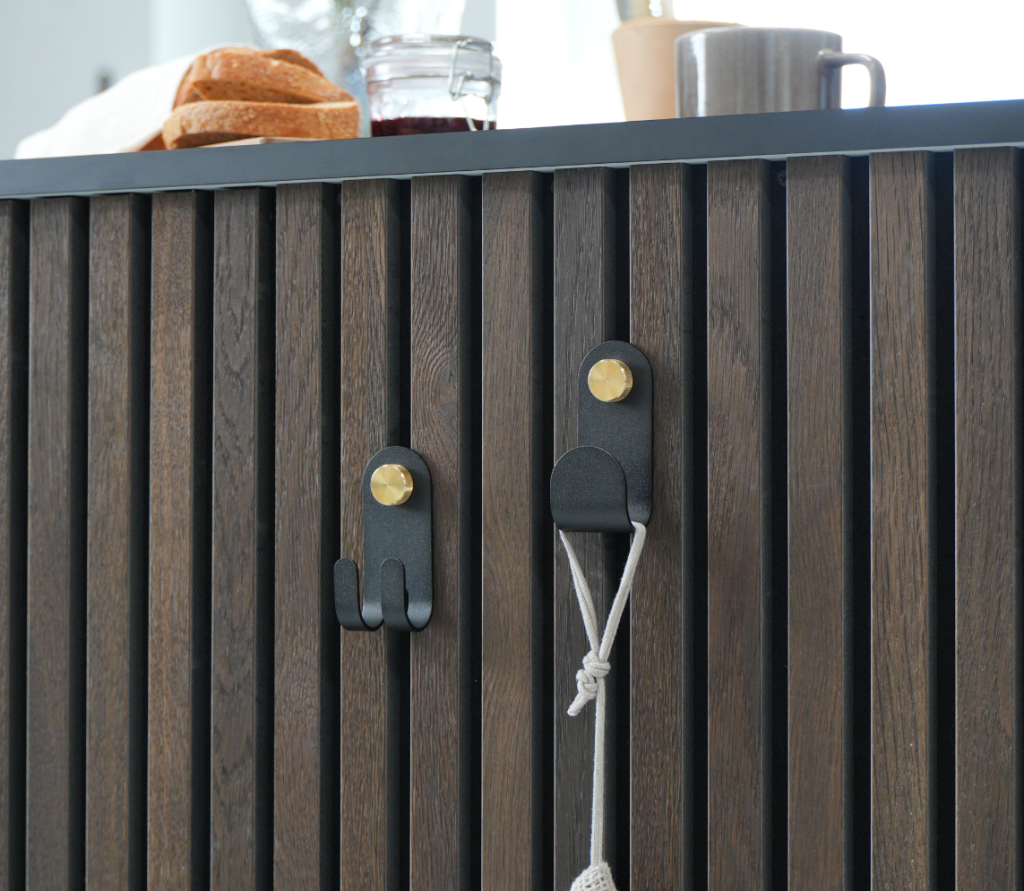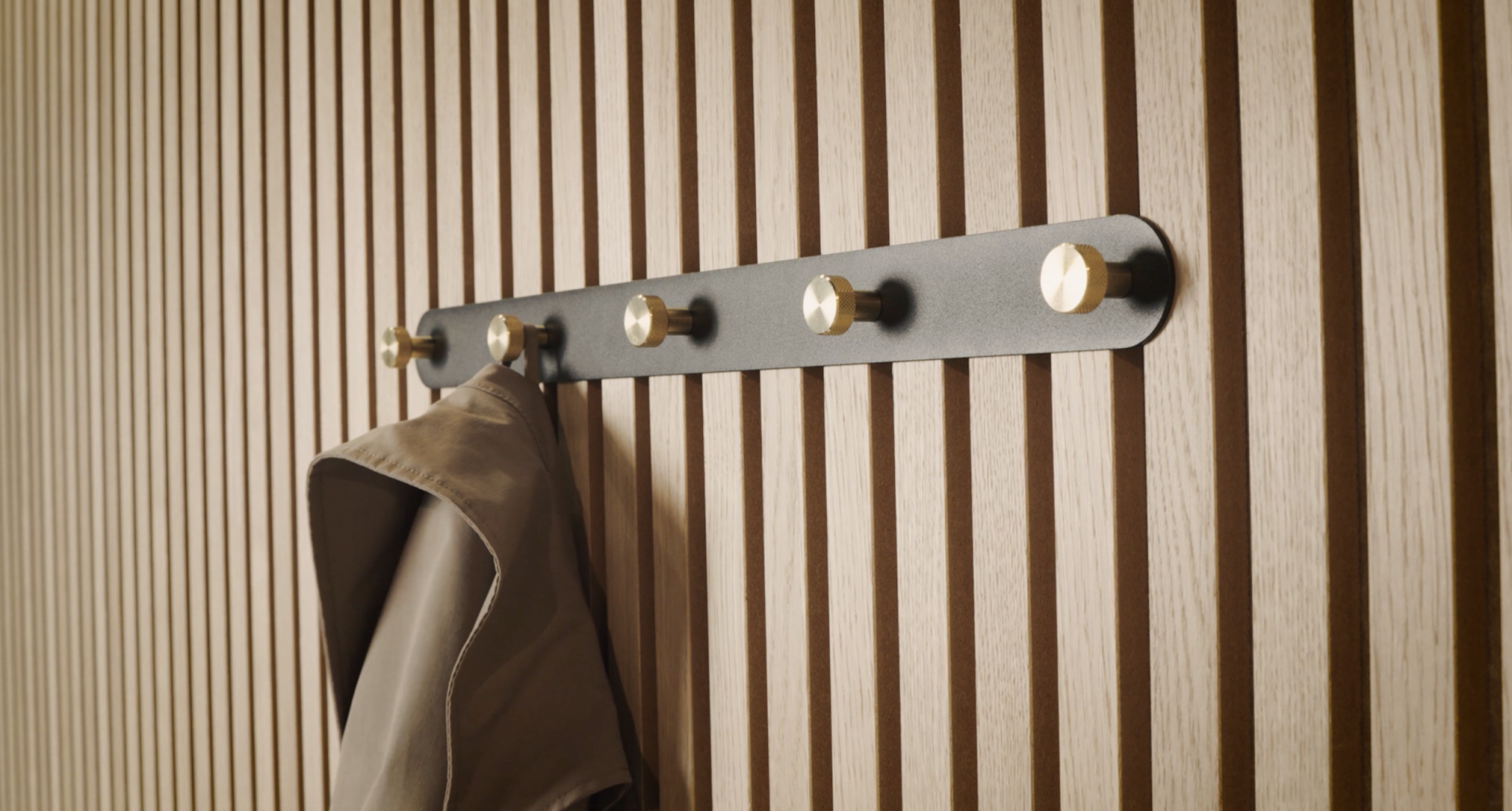 Les Norr Hangers sont disponibles en version simple ou double, en noir et laiton ou beige et inox.