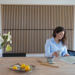 L’Akupanel peut être utilisé pour créer de beaux murs et plafonds à lamelles qui donnent à la pièce un aspect moderne. Le panneau absorbe les sons et élimine la réverbération dans la pièce, ce qui améliore considérablement l’acoustique de la pièce. Le panneau peut être monté horizontalement et verticalement.
