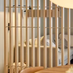 Embrace est un séparateur de pièce monté entre le sol et le plafond. Utilisez-le pour créer des espaces personnalisés—sans construire de murs.
