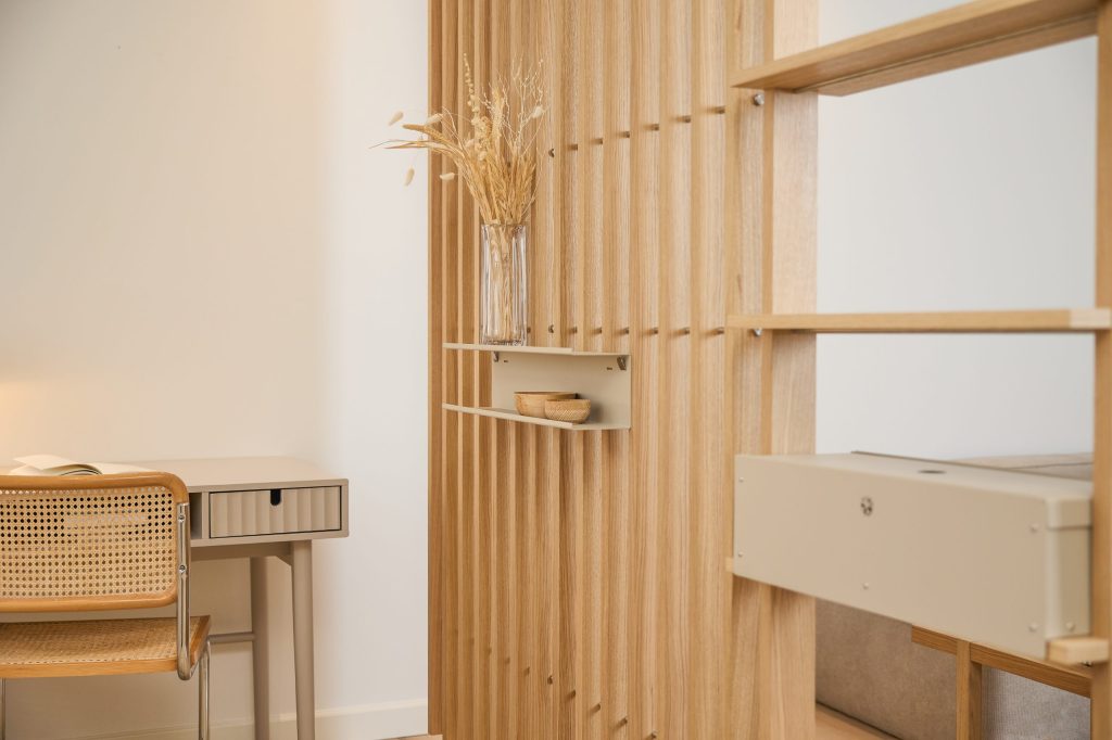 Un rangement calme et fermé conçu pour fonctionner magnifiquement avec votre séparateur de pièce Embrace.