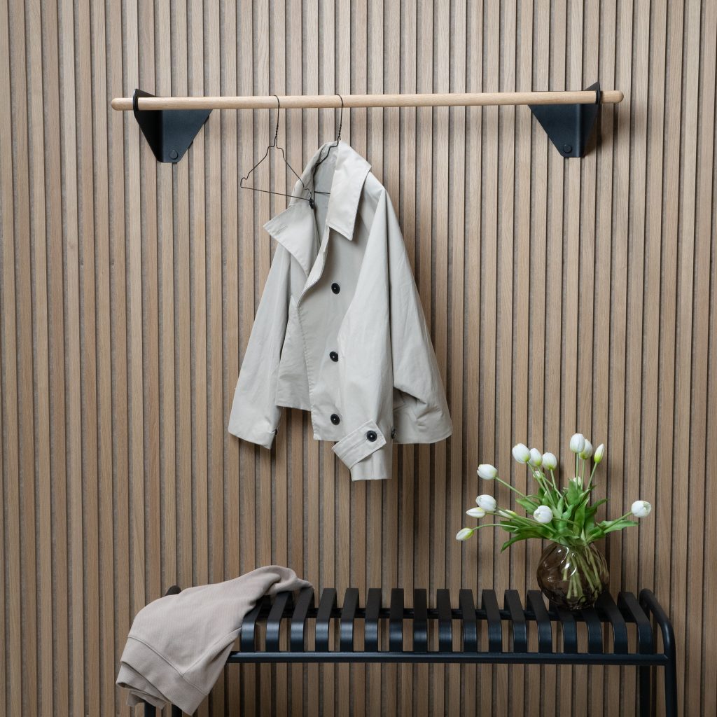 La Linn Tringle de penderie est une tringle élégante et minimaliste avec du bois en chêne massif et un support en acier thermolaqué. Conçue pour s’intégrer harmonieusement à vos Akupanels WoodUpp, c’est un véritable plus pour les entrées, chambres ou tout espace nécessitant une solution de rangement élégante. Facile à installer, stable et résistante, elle peut accueillir aussi bien les manteaux d’hiver que les sacs à main et tout type d’accessoires.