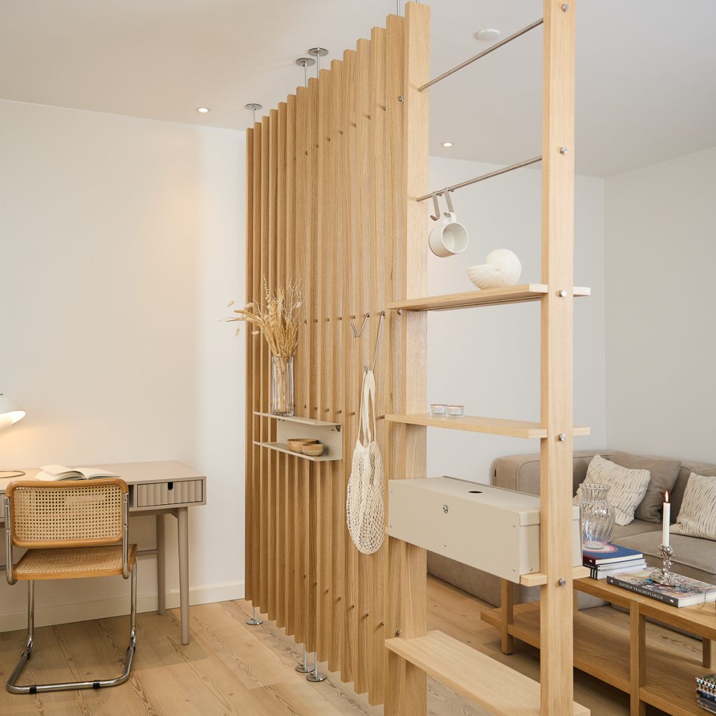Als flexible Alternative zu festen Trennwänden oder klassischen New Yorker Wänden wirkt BM1 visuell leichter und lässt sich jederzeit anpassen – für Räume, die sich mit dem Leben verändern.