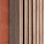 Die Endlamellen werden auf der Rückseite verleimt und direkt an der Wand befestigt. Halte die Leiste an ihrem Platz, bis der Kleber getrocknet ist.